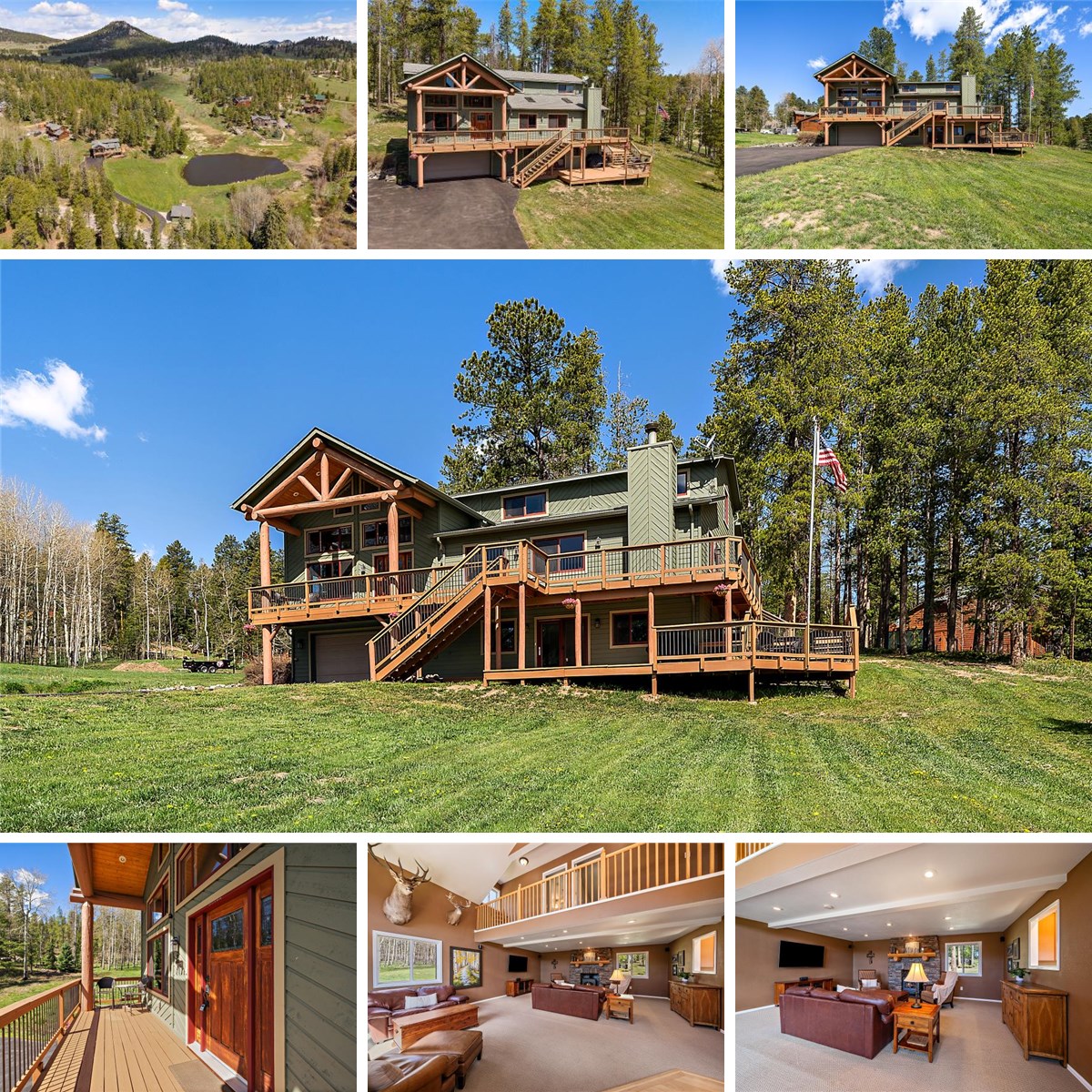 Escape to mountain seclusion at this exquisitely updated and remodeled home exuding a rustic feel. Just stepping into the home, you’ll experience the combination of effortless modern living with natural serenity, nestled amidst the aspen and pine of the scenic foothills highlighted with full log and rustic barnwood accents. Spanning a generous 3,491 square feet, this residence offers a versatile layout with 4 bedrooms, 4 bathrooms, and many flex-spaces adapting to your lifestyle needs. The heart of the home boasts an inviting open-concept living area with high ceilings, seamlessly extending to the outdoors on a freshly stained 2-level deck, where a tranquil pond accentuates the serene setting. Perfect for entertaining or personal relaxation, the expansive outdoor living spaces promise breathtaking views and privacy. Discover the primary suite's sitting room with log accents, fireplace, and stone chimney for a quiet getaway. Step into the elegant ensuite featuring modern rustic finishes including a copper claw-foot tub. Practicality meets style with a whole house generator and an additional detached 2-car garage/workshop, complete with chicken coop and greenhouse. With a convenient 10-minute drive to Conifer and access roads on the Jeffco bus route, commuting is a breeze. Situated on a sprawling lot of 1.95 acres, this property provides ample space to explore, unwind, and enjoy the natural beauty of Colorado's landscapes. Don't miss the opportunity to own a piece of paradise where modern comforts meet mountain tranquility.