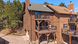 Nestled on a quiet private cul-de-sac in desirable North Evergreen, this beautifully updated half-duplex offers the perfect balance of convenience and serenity. With in-town access to everyday amenities, yet tucked into a peaceful setting, this home truly lives like a single-family residence. Set on a sunny lot, the property boasts stunning, far-reaching mountain valley views that create a breathtaking backdrop. Two back decks are perfectly oriented to capture warm southern sun and those sweeping vistas. Inside, thoughtful updates shine throughout. The seller has updated the electrical, replaced all windows and sliding glass doors with Renewal by Andersen, installed newer carpet (approx. 2024), and engineered and permitted new composite decks (2022). The kitchen features rich cherry cabinetry, Corian countertops, and stainless-steel appliances, blending style and functionality. The open living and dining area is filled with natural light and showcases the beautiful moss-rock gas fireplace with custom-designed, hanging log mantel. A desirable main-level bedroom and full bath provide flexibility for guests or a home office. Upstairs, you’ll find a spacious secondary bedroom with vaulted ceilings, a three-quarter bath, along with a luxurious primary suite offering its own private balcony to capture the views, vaulted ceilings, a walk-in closet, and an en-suite bath complete with a soaking tub and dual vanities. Located near Stagecoach Park ballfields and playground, and the gorgeous 1,600-acre Elk Meadow Open Space Park with miles of trails for hiking and mountain biking adventures, this home offers easy access to outdoor recreation while still providing a convenient commute to Denver. Additionally, the Xfinity high-speed internet makes streaming, gaming, and working from home easy. A rare opportunity to enjoy peaceful mountain living with incredible views and close proximity to amenities—this is Evergreen living at its finest.