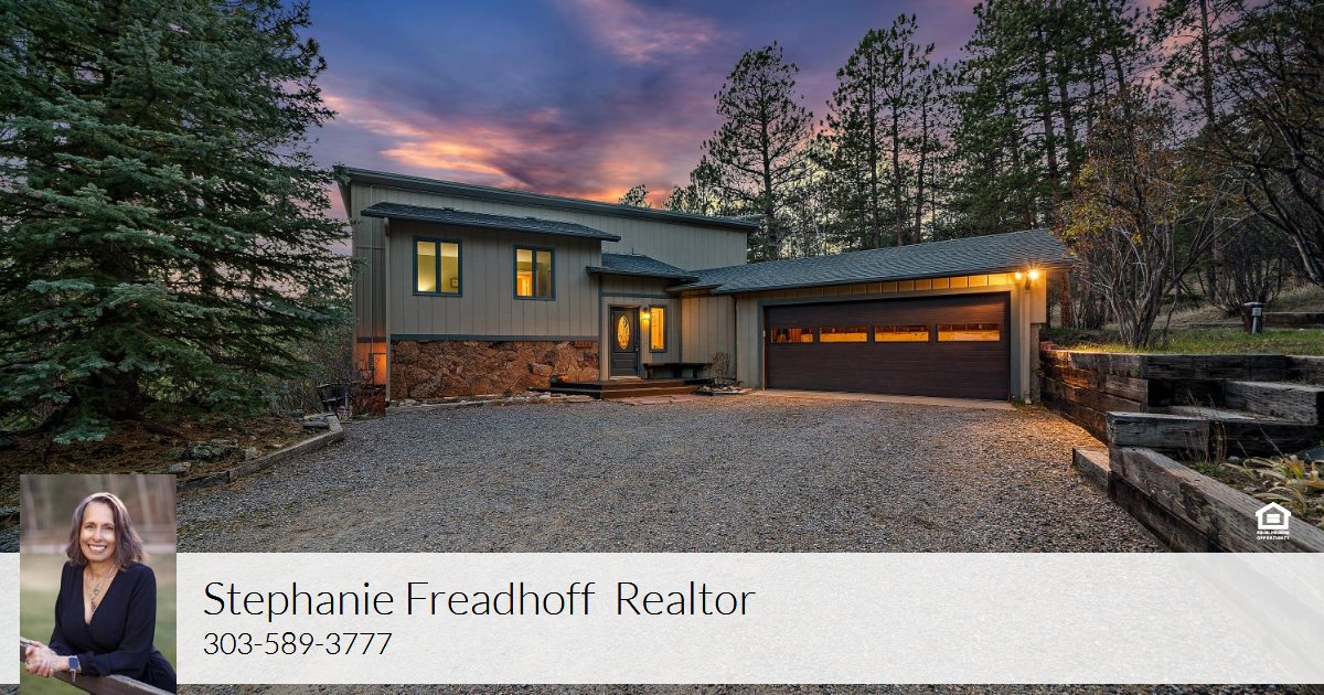 Have you dreamed of a tranquil escape nestled in the heart of Evergreen's iconic Upper Bear Creek, where peace and privacy reign supreme? Welcome to this wonderful 3 Bed, 3 Bath retreat, perfectly situated on a rolling, mitigated 10-acre lot, offering a serene lifestyle away from the hustle and bustle of traffic. Cherished by its owners for nearly 40 years, this home greets you with pristine walnut hardwood floors and a stunning chandelier in the foyer. The main level is bathed in natural light, featuring a spacious den anchored by a captivating moss rock wood-burning fireplace and views of forest and rock formations. The heart of this home is the updated eat-in kitchen. Blonde maple hardwood floors complement a butcher block island, blending beautifully w/KitchenAid stainless steel appliances, including double convection ovens and a Jen Air cooktop. Granite countertops and generous walk-in pantry complete this culinary haven. Adjacent to the kitchen, the dining room opens to a charming flagstone patio, perfect for alfresco dining. A cozy breakfast nook leads to a second flagstone patio on the back deck, ideal for enjoying morning coffee amidst nature. The bright living room features soaring ceilings, cozy wood stove, and mini-split system ensuring year-round comfort. Walk out to another flagstone patio. A powder bath finishes off this level. Upstairs, the spacious primary suite boasts serene views. The en-suite bath features executive height counters, herringbone tile, and a custom shower, alongside a walk-in closet w/built-ins. Two additional generous sized light-filled bedrooms with forest views, a full bath, and laundry area complete this level. An oversized two-car garage with a bonus heated area, perfect for a workshop or gym with exterior access. With Pella windows and doors, new carpeting throughout, this home is move-in ready. This exceptional property offers a rare opportunity to own a private mountain sanctuary in coveted Upper Bear Creek. Don't miss it!