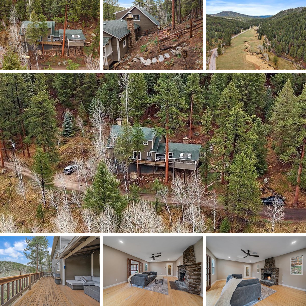 One of Evergreen's best values under 600K! Now priced at $569,000 and available for a limited time. Listing will be withdrawn on 10/31, so act quickly to make this Evergreen retreat yours. Nestled on a full acre in Blue Creek Valley, this mountain retreat combines rustic charm with modern comfort. The original cabin now serves as a dramatic family room with vaulted ceilings and a wood-burning fireplace, while a bright sunroom captures mountain views in three directions. The open kitchen, dining, and living areas make entertaining effortless. Two main-level bedrooms, a full bath, and laundry offer everyday convenience, while the upstairs flex room provides the perfect space for an office, playroom, or guest suite. Step outside to a west-facing deck, fenced yard for pets, and open space across the access road—ideal for relaxing and taking in the scenic views of Blue Creek Valley.